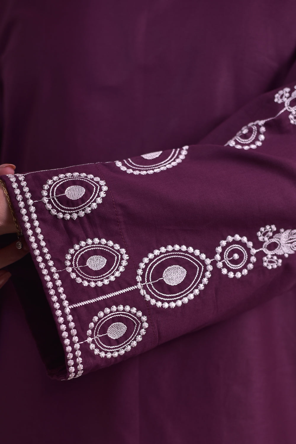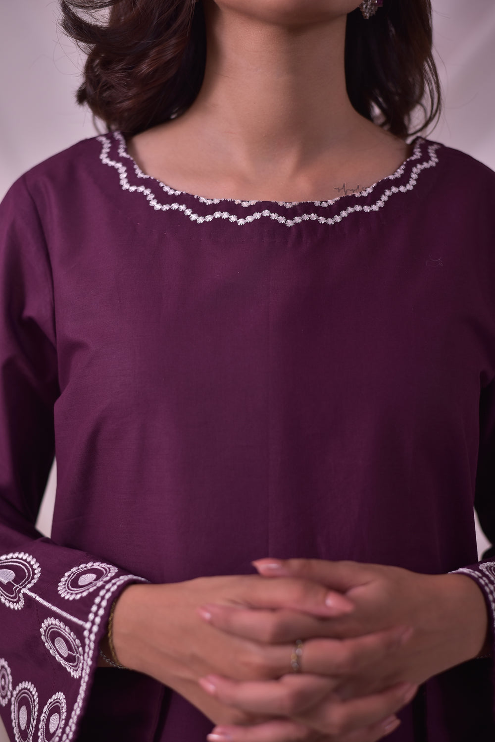 Elegantly embroidered shirt featuring a refined neckline and full sleeves for a graceful silhouette.