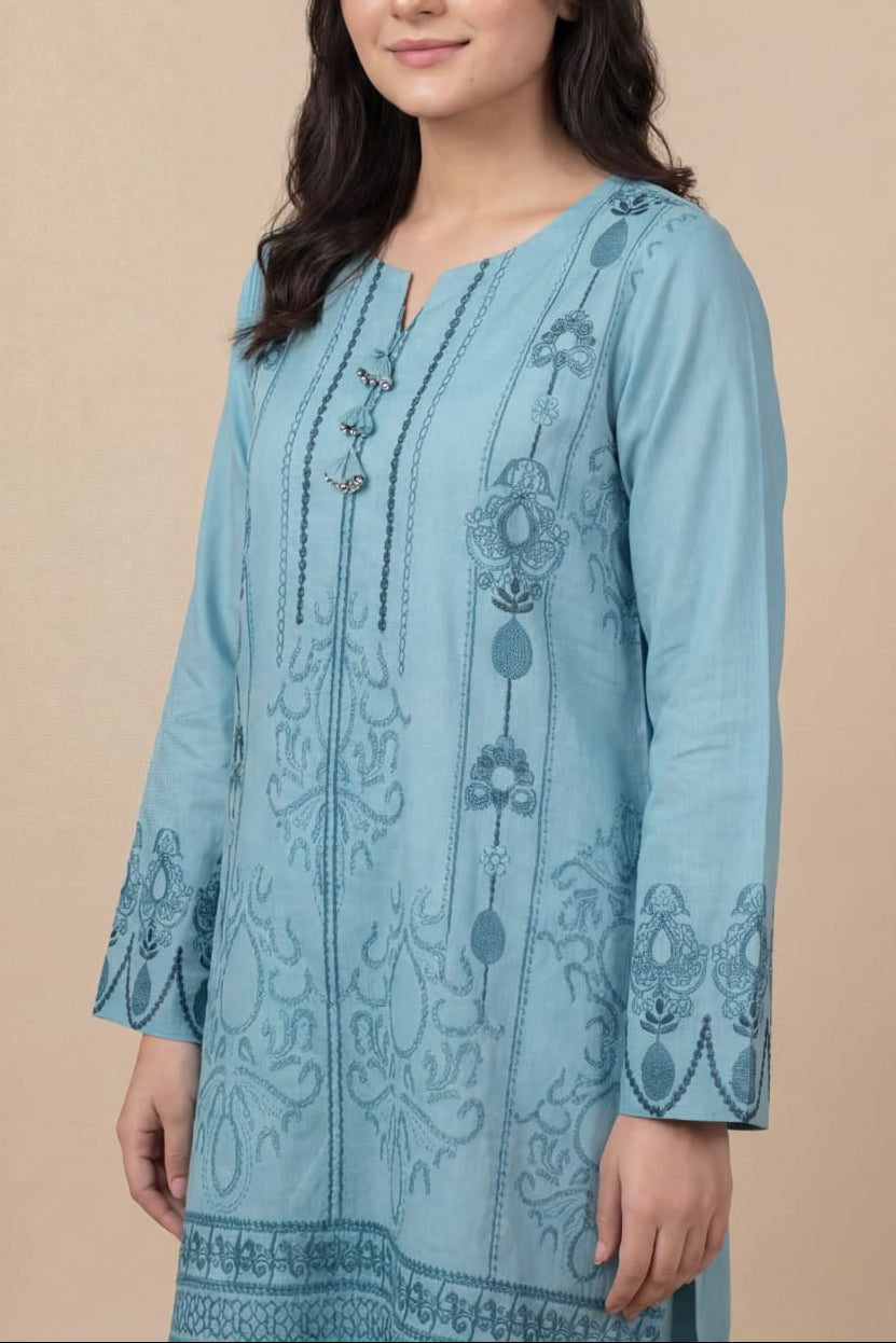The beautiful print detailing adds a refined touch, while the soft lawn fabric provides a smooth and comfortable feel throughout the day. Perfect for casual wear or semi-formal occasions, Aquamarine Elegance combines style and comfort effortlessly.